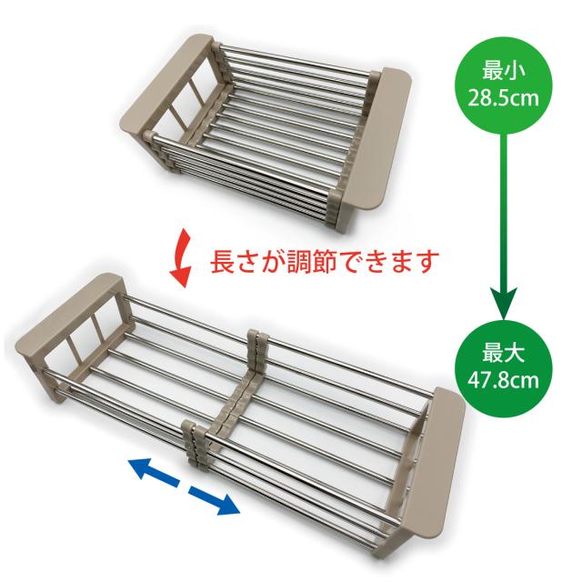 シンクのサイズに合わせて28.5cm〜47.8cmで調整ができます。