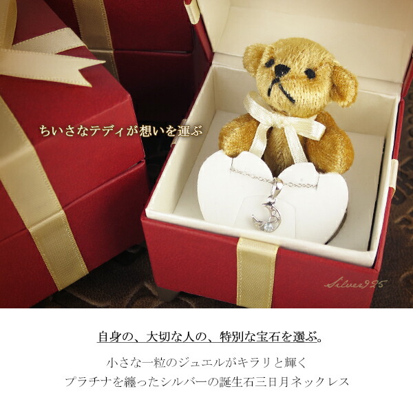 (シルバーアクセサリー 誕生石 一粒 華奢 細身 プラチナ プラチナコーティング ガーネット アメジスト アクアマリン クリスタルクォーツ クリスタル クォーツ 水晶 エメラルド ブルームーンストーン ムーンストーン ルビー ペリドット サファイア ブルーサファイア トルマリン ピンクトルマリン ブルートパーズ トパーズ タンザナイト ホワイト 白 シルバー 銀 レッド 赤 ピンク ローズ ワインレッド 赤紫 紫 紺 ネイビー 青 ブルー アイスブルー すみれ色 水色 アクアブルー グリーン 緑 黄緑 イエロー 黄色 きらきら きれい 上品 清楚 大人かわいい 月 三日月 ムーン クレセントムーン 月の満ち欠け 箱付き くま付き くま くまのぬいぐるみ 熊 熊のぬいぐるみ テディベア テディベアストラップ テディベア付き ぬいぐるみ付き)