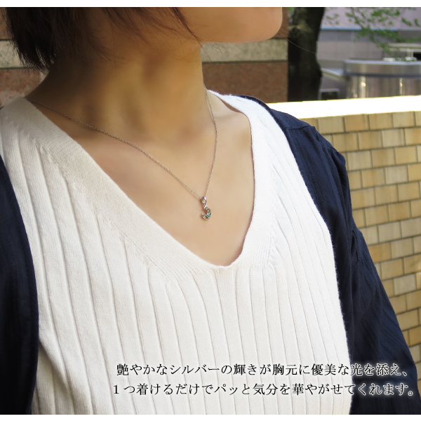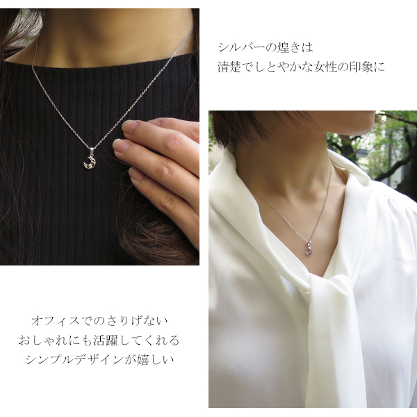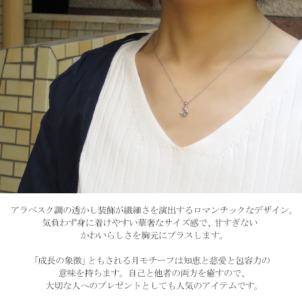 プラチナコーティング シルバー925 クレセントムーン 誕生石ネックレス