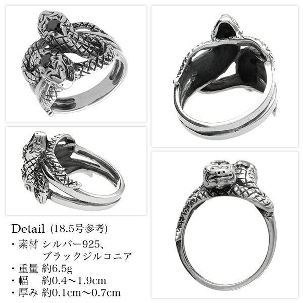 ブラックジルコニア ツイン スネーク シルバーリング 9〜24号