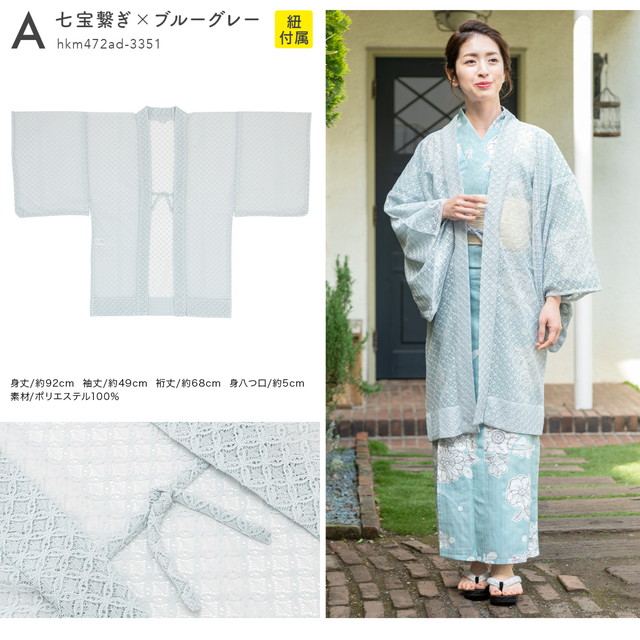 羽織 着物 レディース レース 和装コート 総レース 薄羽織 シースルー 薄手 春 夏 長羽織 防寒 七宝繋ぎ 花 単衣 紬 小紋 浴衣 女性用 フリーサイズ 送料無料