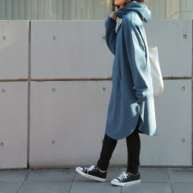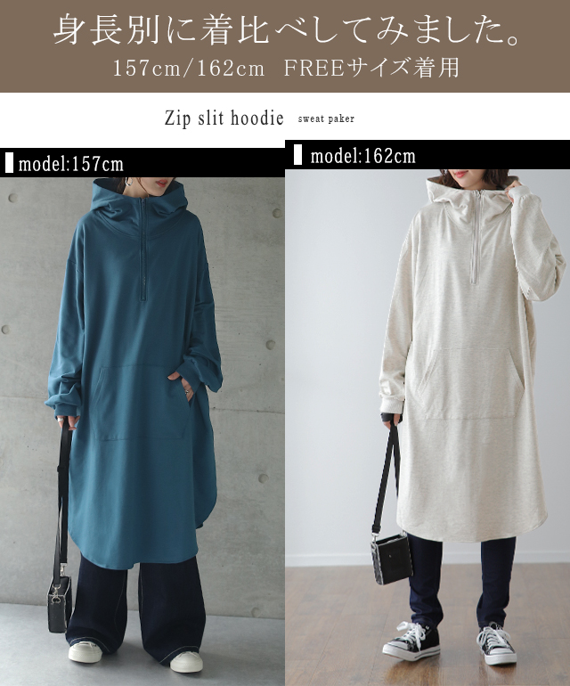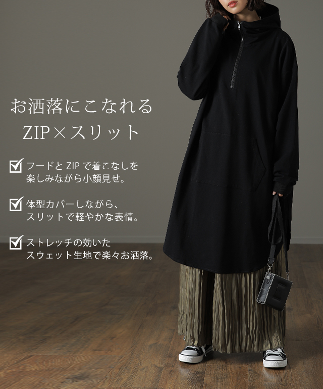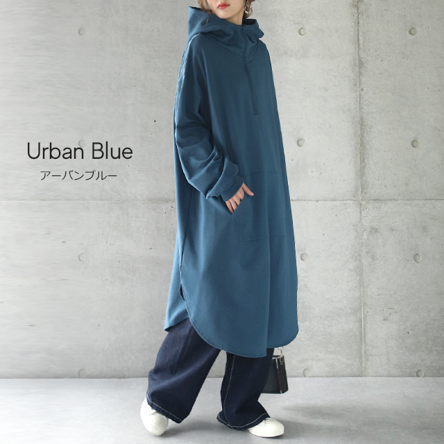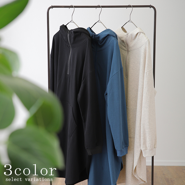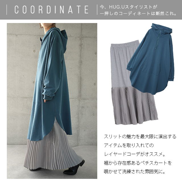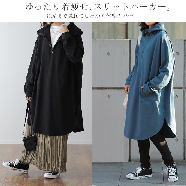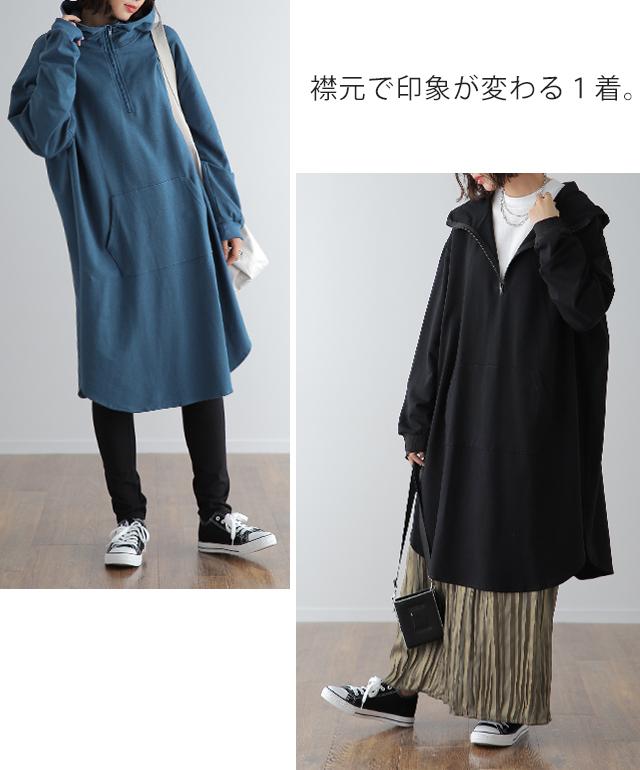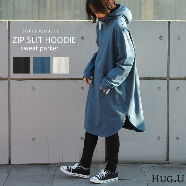 パーカー ワンピース パーカーワンピース フーディー Aライン 一部12月下旬入荷 部屋着 ルームウエア ジップ スタンドネック ハイネック レディース トレーナー スウェット スエット 無地 ビッグシルエット お尻が隠れるHUG.U 冬 秋 秋新作
