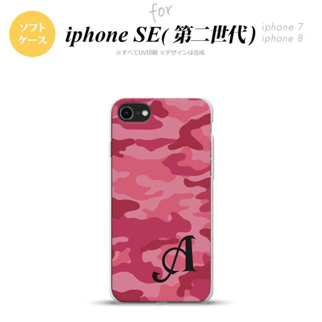 iPhone SE 第2世代 iPhone SE2 スマホケース 背面カバー ソフトケース ウッドランド 迷彩 A ピンク +イニシャル nk-ise2-tp1147i