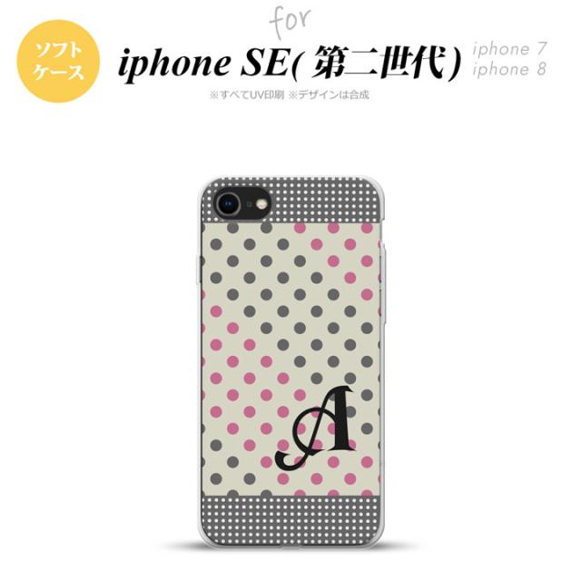 iPhone SE 第2世代 iPhone SE2 スマホケース 背面カバー ソフトケース ドット 水玉 C グレー ピンク +イニシャル nk-ise2-tp1649i