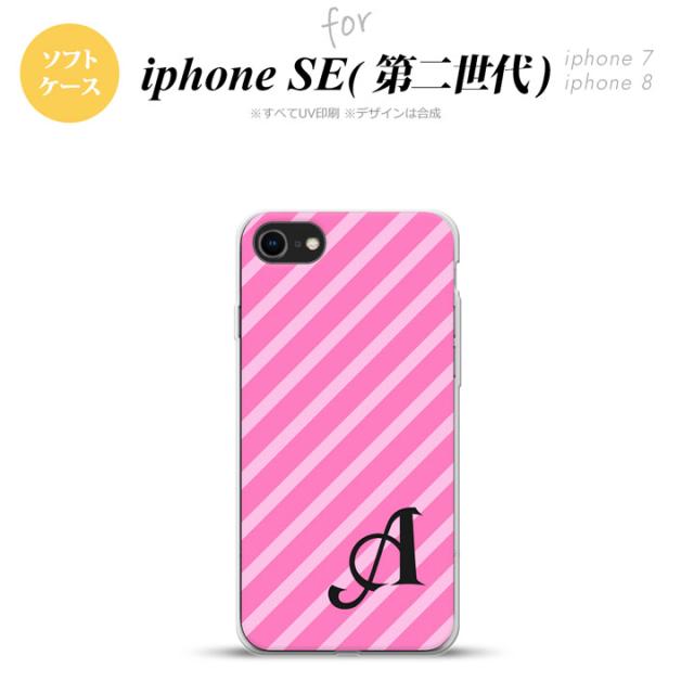 iPhone SE 第2世代 iPhone SE2 スマホケース 背面カバー ソフトケース ストライプ ピンク +イニシャル nk-ise2-tp715i