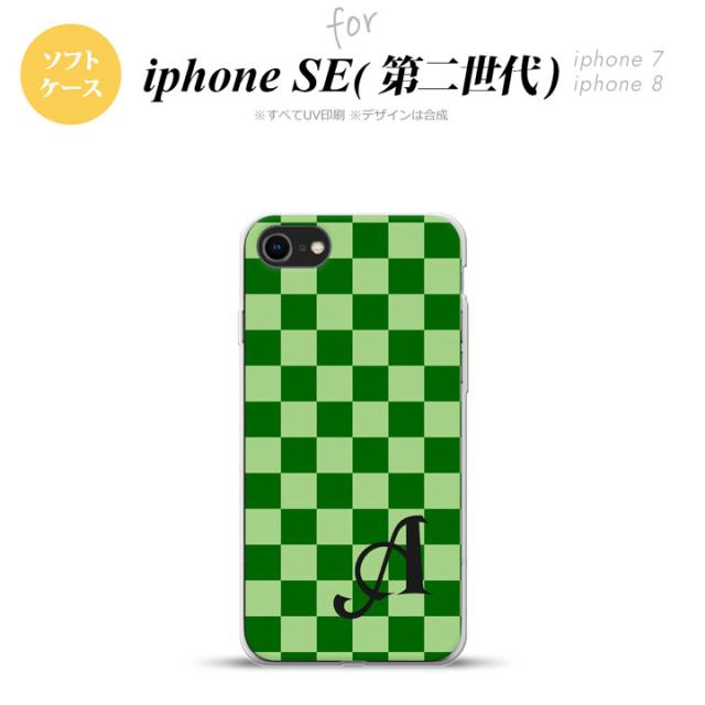 iPhone SE 第2世代 iPhone SE2 スマホケース 背面カバー ソフトケース スクエア 緑 グリーン +イニシャル nk-ise2-tp771i