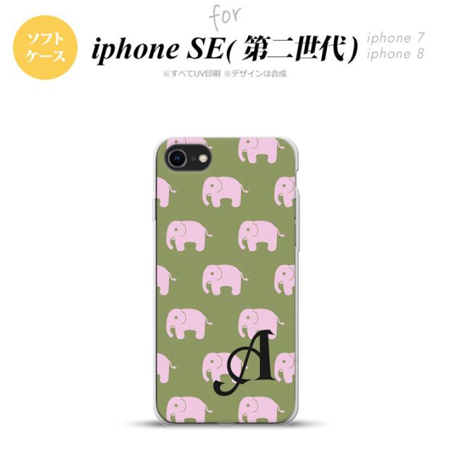 iPhone SE 第2世代 iPhone SE2 スマホケース 背面カバー ソフトケース ゾウ モスグリーン +イニシャル nk-ise2-tp773i