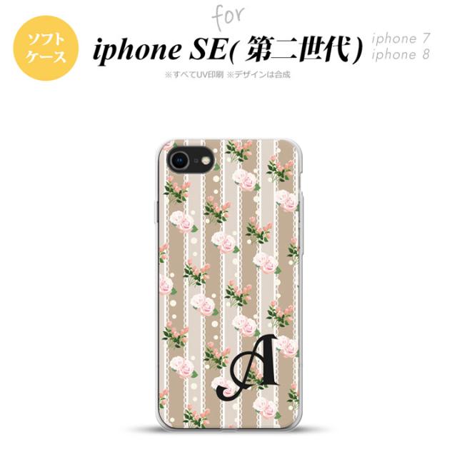 iPhone SE 第2世代 iPhone SE2 スマホケース 背面カバー ソフトケース 花柄 バラ レース ベージュ +イニシャル nk-ise2-tp268i
