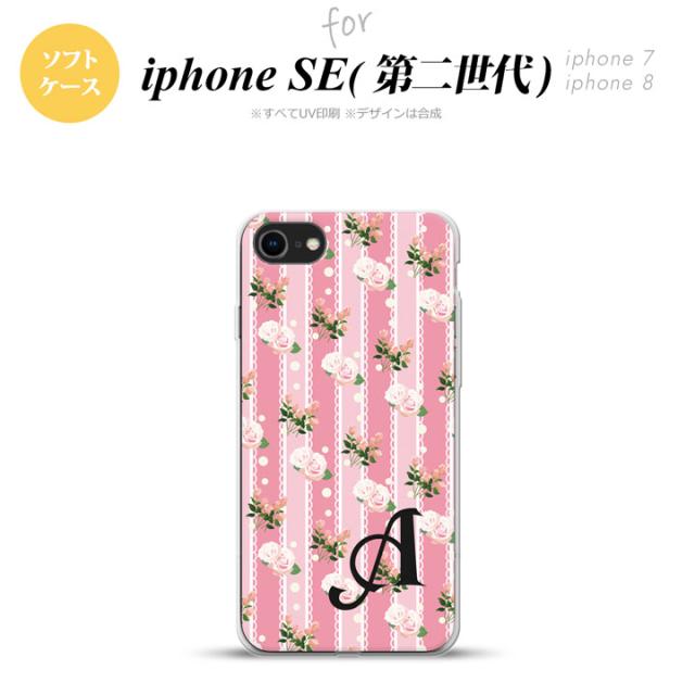 iPhone SE 第2世代 iPhone SE2 スマホケース 背面カバー ソフトケース 花柄 バラ レース ピンク +イニシャル nk-ise2-tp269i
