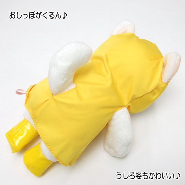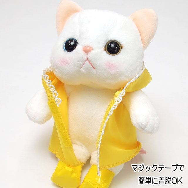 ぬいぐるみ 雨ふり Mサイズ レインコート ピンク/イエロー 白猫 choochoo本舗 チューチュー本舗 バッグチャーム 猫雑貨 猫グッズ