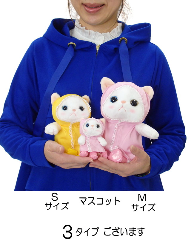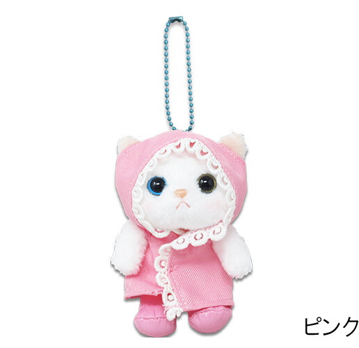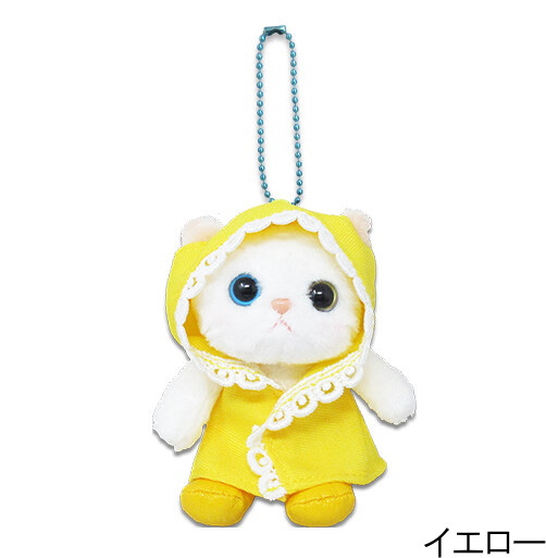 ぬいぐるみマスコット 雨ふり レインコート 白猫 choochoo本舗 チューチュー本舗 バッグチャーム 猫 雑貨 小物 グッズ ねこ ネコ 猫柄
