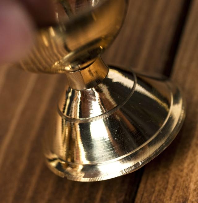 アジアンなイメージを代表する蓮の花をモチーフにしたオイルランプ&お香立てです。オイルランプにする時はコットンをひねり灯心にし、サラダ油を燃料にします。お香はスティック型をそのまま刺すだけ。■安定感のあるブラス製