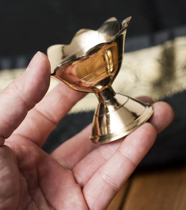 蓮型香立て(6.5cm) / ディヤ ディワリ お香たて ランプ 灯心 オイルランプ インド お香立て 礼拝 インセンス アジア エスニック