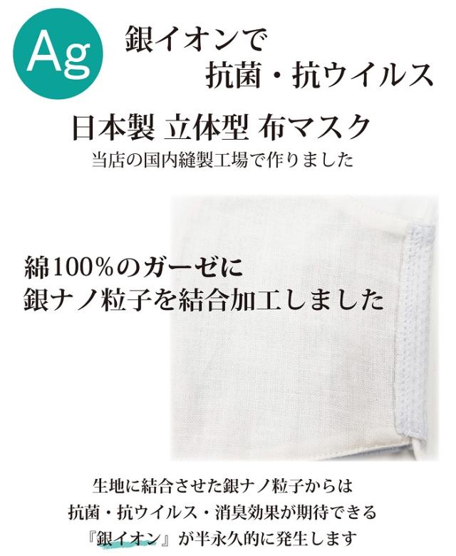 日本製 抗菌・抗ウイルスマスク Ag 銀イオン 日本製マスク フィルター ポケット ガーゼ ゴムひも調節可能 布マスク 洗える