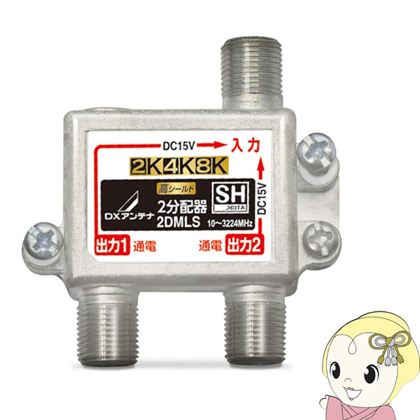 新4K8K衛星放送(3224MHz)対応製品です。 アンテナからの入力信号を均等に分ける機器です。 2分配器は、入力信号を二つに分ける機器です。 一つの出力端子のみ電流(DC15 V)が通過します(1端子通電形) JEITA SHマーク認証済み。 ※記載は商品仕様の一部です。仕様説明不足等の理由での返品はできません。特に適合等は必ずご確認ください。