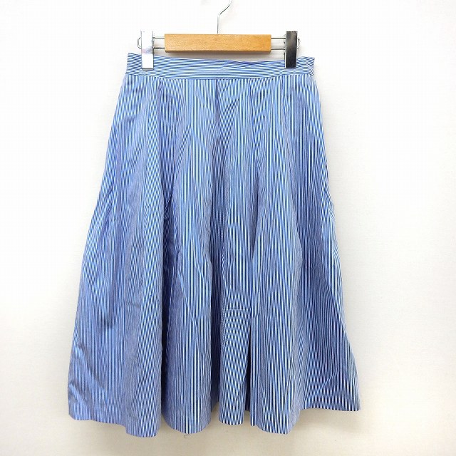【中古】アーバンリサーチ URBAN RESEARCH スカート タック フレア ストライプ サイドジップ FREE ブルー