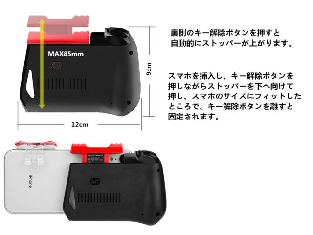 ゲームや好みに合わせお使いいただけるコントローラーです。高さ(スマホ幅)最大85mmまで簡単に取付できるゲームパッド。