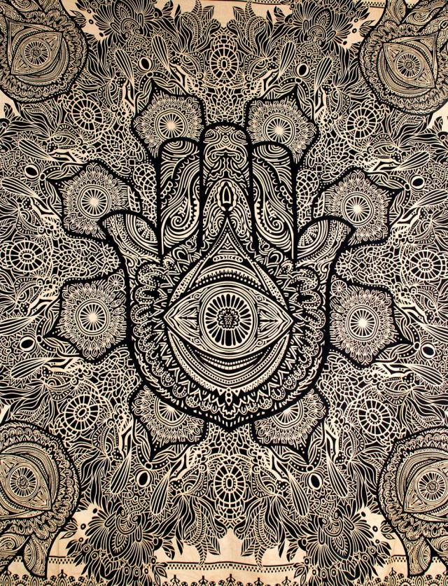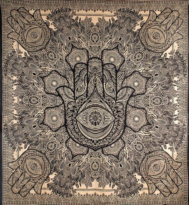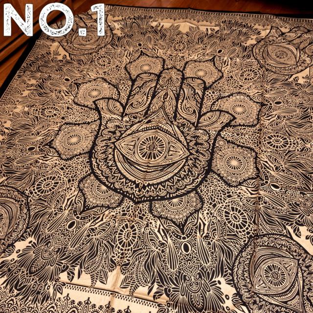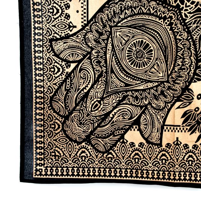 マルチクロス - ファーティマの手 ハムサ ゴールドラメ〔約225cm×約205cm〕 / タペストリー、テーブルクロス、マルチクロス、ベッドシーツ、大きなこたつカバー、ベッドカバー、お部屋の装飾、ソファーカバー、マンダラ、曼荼羅、更紗、唐草、インド綿 布、バティック、パーテーション、ボタニカル、更紗 布とファブリック 【インドとアジアンの布