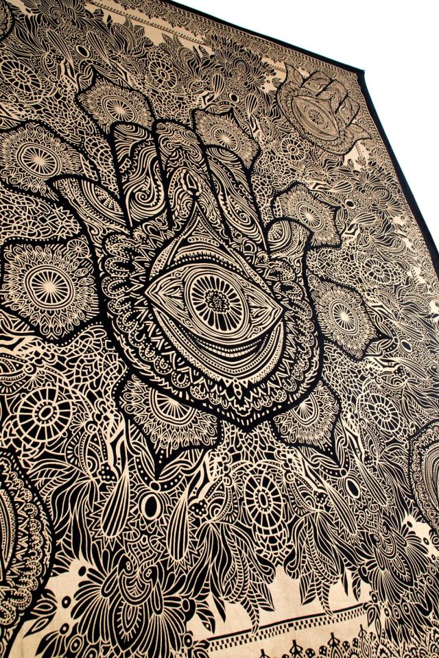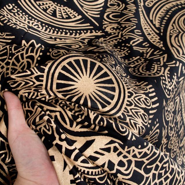 大きな布にとても丁寧に、インド伝統の唐草柄やマンダラ柄、象さんや、お花などがプリントされているので、こちら1枚をお部屋に飾るだけでアジアンなお部屋に大変身!