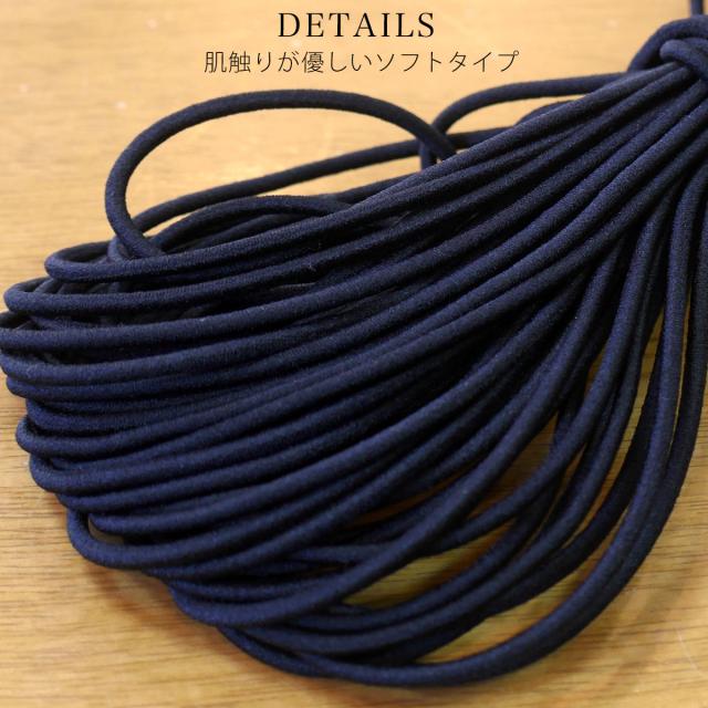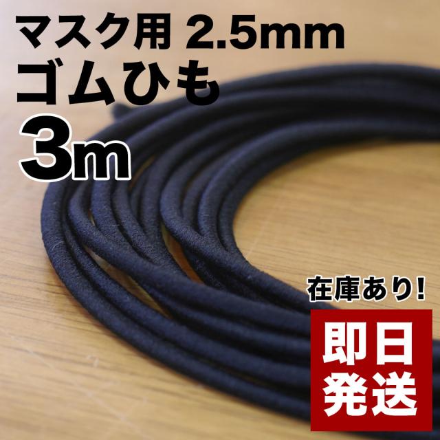 在庫あり 即納 日本製 肌に優しい マスク用 ゴム紐 2.5mm 3m 黒 ブラック ソフトタイプ 手作りマスク ウイルス対策 日本国内発送