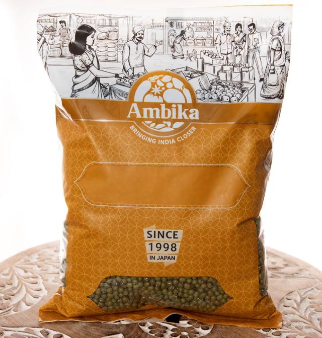 ムング豆ホール Moong Whole 皮付き緑豆【1kgパック】 / ダール ムングダル アンビカ(AMBIKA) スパイス カレー アジアン食品 エスニック食材