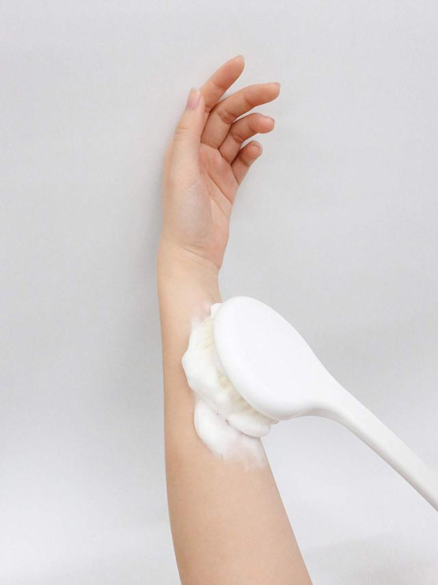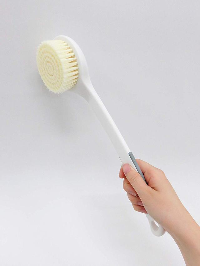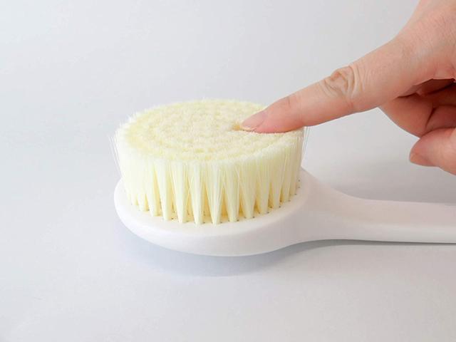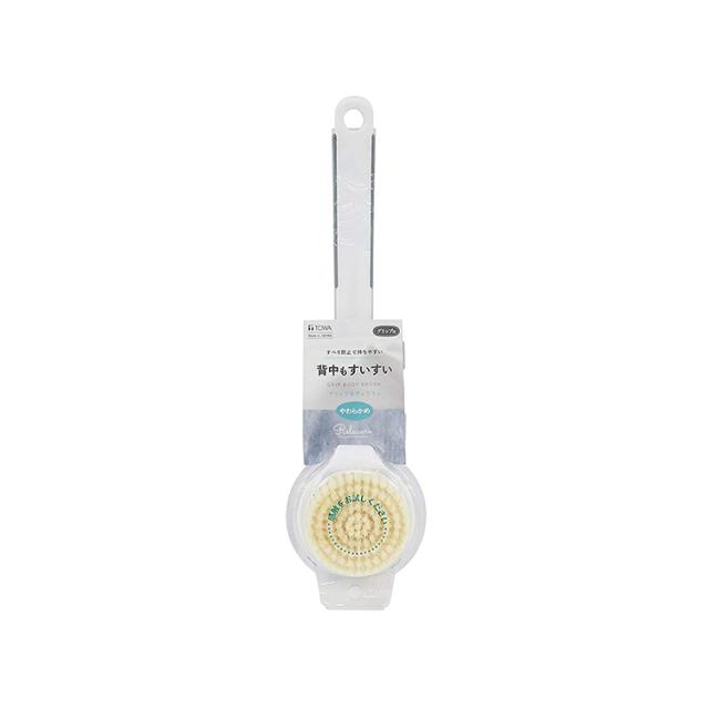 ●すべり防止グリップ付きで背中もすいすい洗えるボディブラシです。
