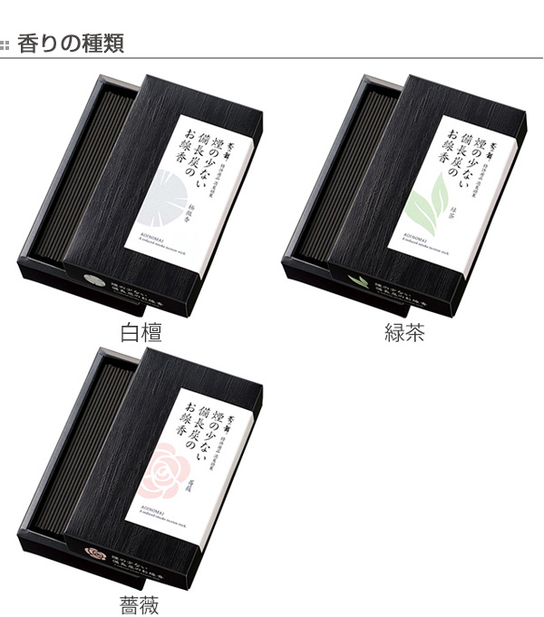 【内容量】1箱(白檀:約130g、緑茶・薔薇:各 約100g)