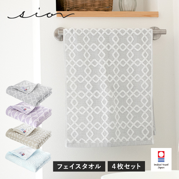 今治タオル フェイスタオル 4枚セット シオン タオル 送料無料 (宅配) まとめ買い 日本製 RSL 海 sion ジャガード織 リバーシブル おしゃれ