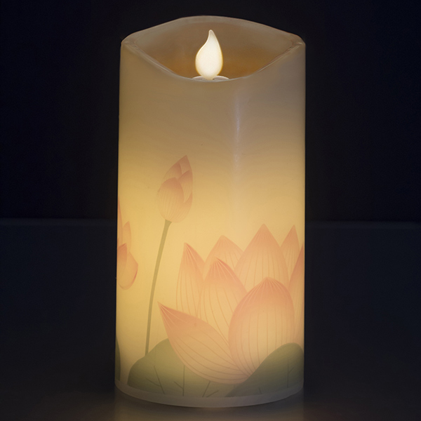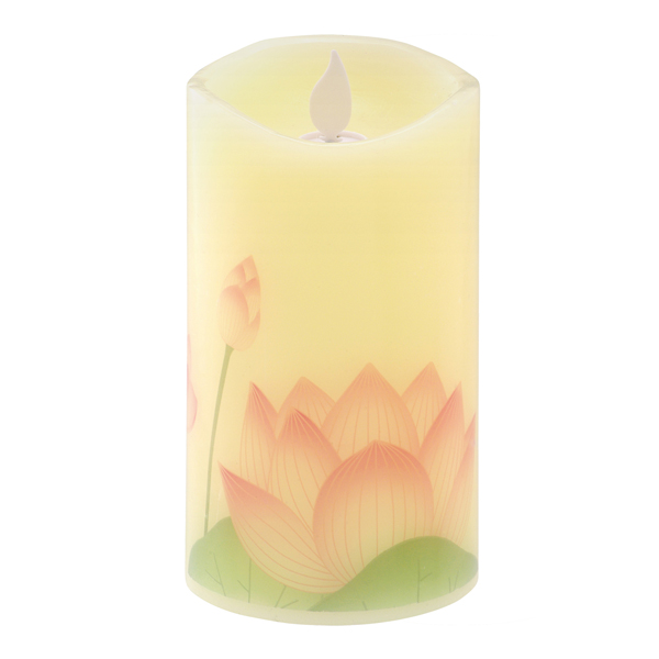 本物のロウを使ったリアルな質感と、自然な炎のゆらぎを再現した電池式のLEDローソクです。やさしい色合いの蓮のつぼみが、見る人の心を和ませます。贈り物にもオススメです。