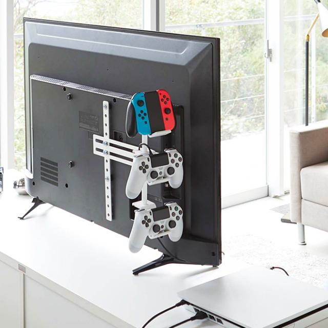 ゲーム機 収納 テレビ裏ゲームコントローラー収納ラック コントローラーパッド スタンド テレビ収納 リビング収納 smart スマート シンプル 山崎実業 YAMAZAKI ホワイト 白 ブラック 黒