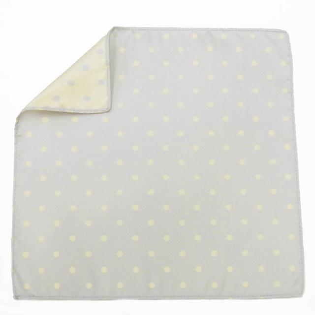 ◆日本製◆ポケットチーフ メンズ 結婚式◇リバーシブル◇クリームイエロー/シルバー 銀◇ドット 水玉◇絹100% メール便可 ACC-RE04