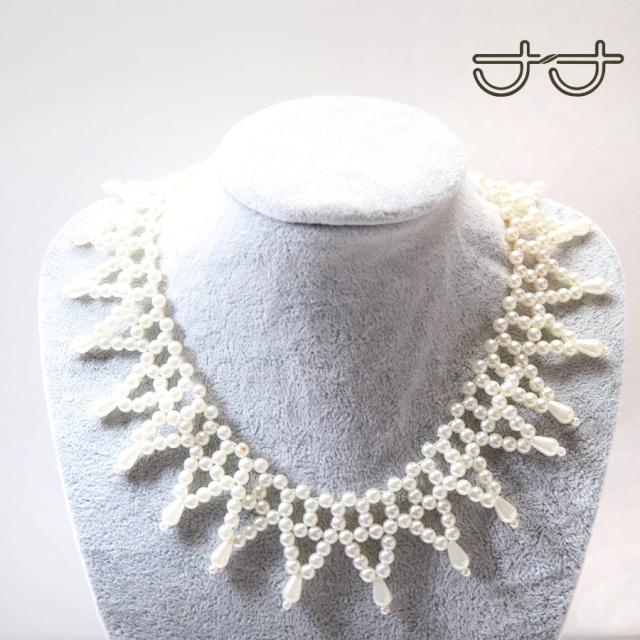 送料無料 パール ネックレス レース 刺しゅう模様編み 付け襟 レディース