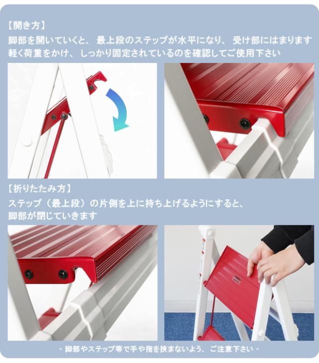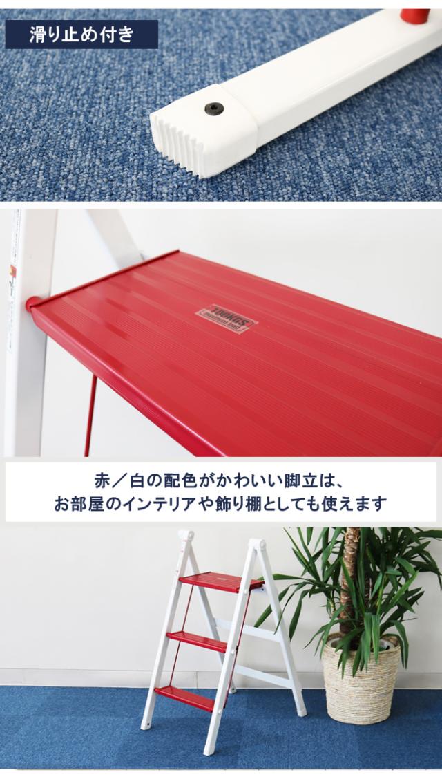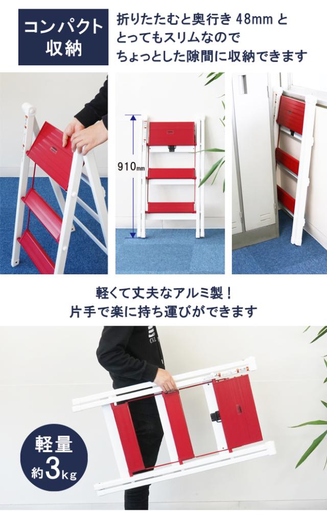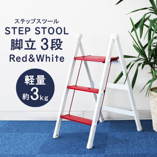 脚立 3段 軽量 アルミ 折りたたみ レッド&ホワイト 赤/白 はしご 踏み台 軽量 アルミ ステップスツール ステップ台 ステップラダー 耐荷重100kg KIKAIYA