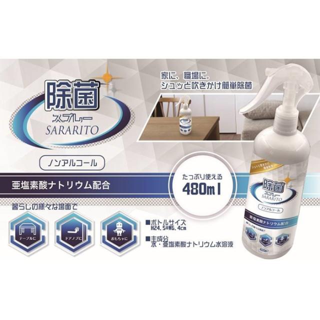3本セット サラリト 除菌スプレー 1本 除菌 sararito ノンアルコール 亜塩素酸配合 480ml ウイルス対策 オフィス 学校 会社 新型ウイルス 感染対策 ドアノブ 家具 おもちゃ 予防 対策 飲食店