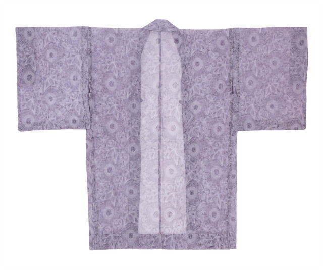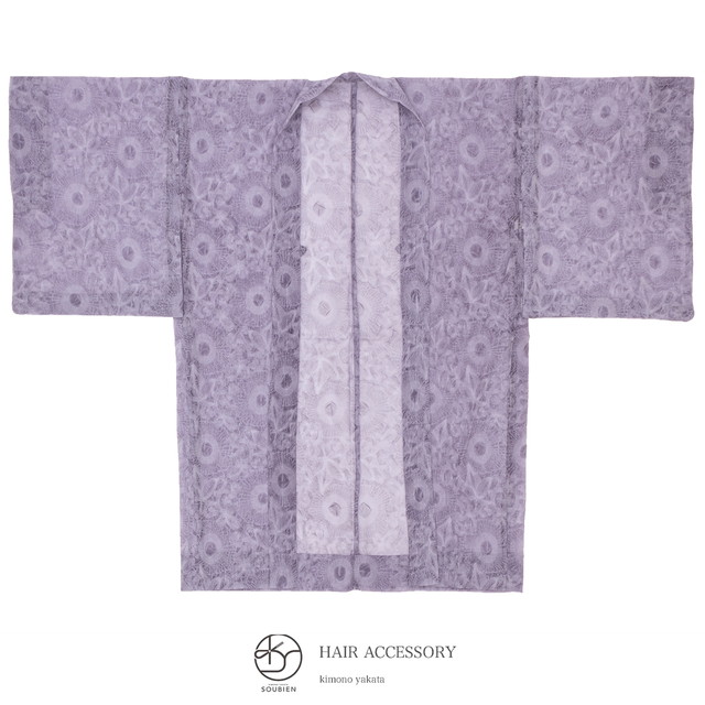 着物 羽織 レディース 透け感 軽やか 塵よけ カジュアル パープル 花 ドレープ加工 防寒 単衣 紬 小紋 浴衣 夏着物用 女性用 フリーサイズ 送料無料