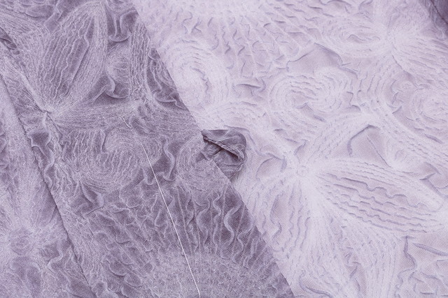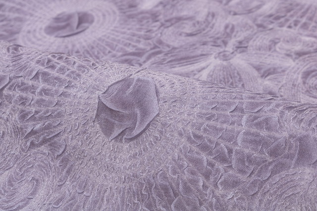 立体的なシワ加工で、ボリュームのある花々を浮かび上がらせた華やかなデザインです。