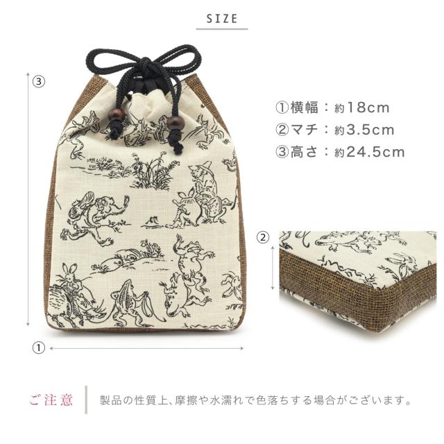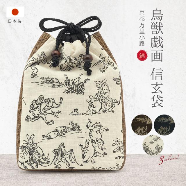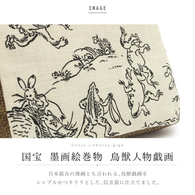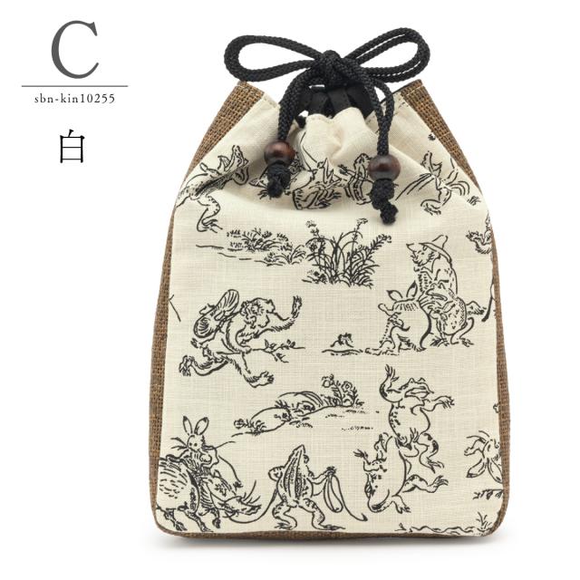 信玄袋 メンズ 巾着 白 茶 紺 シンプル 鳥獣戯画 オールシーズン きんちゃくバッグ タバコ入れ 男物 浴衣向け 着物向け 日本製 メール便対応 送料無料