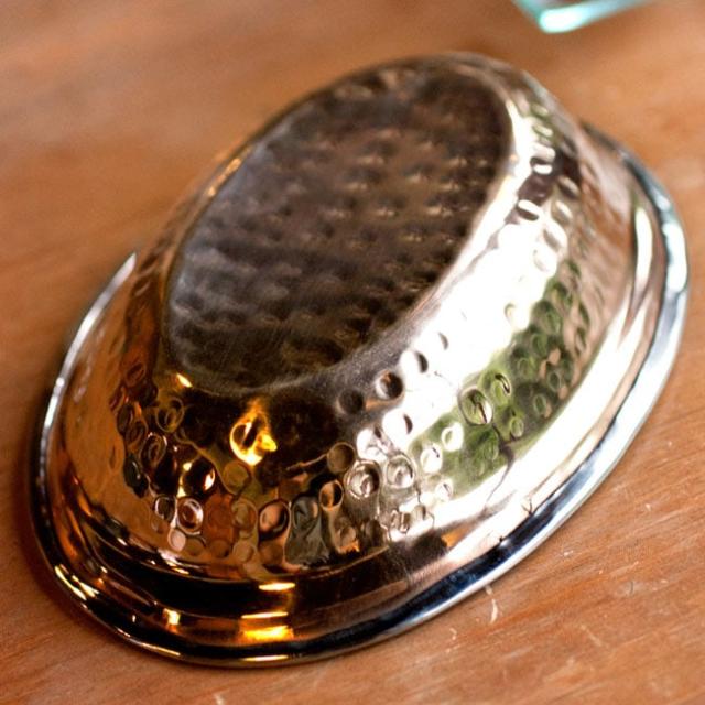 【冷めにくい!二層式】インドのステンレスと銅製 オーバルプレート 約18.5cm×13cm / カレー 皿 ランチプレート 分割 カレー皿 ターリー チャイ チャイカップ アジアン食品 エスニック食材