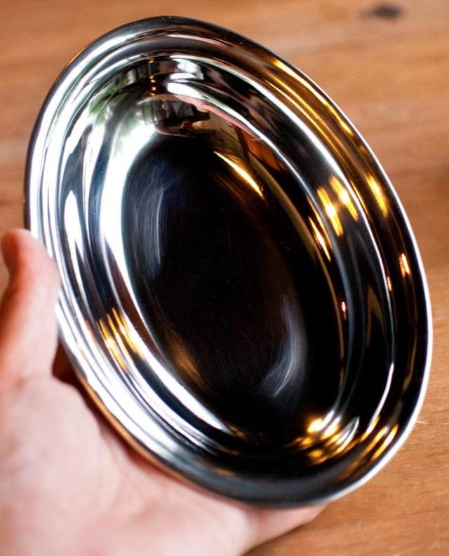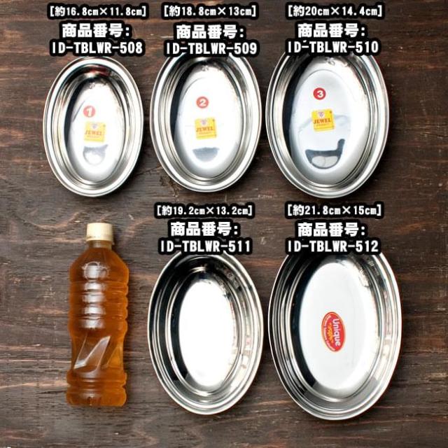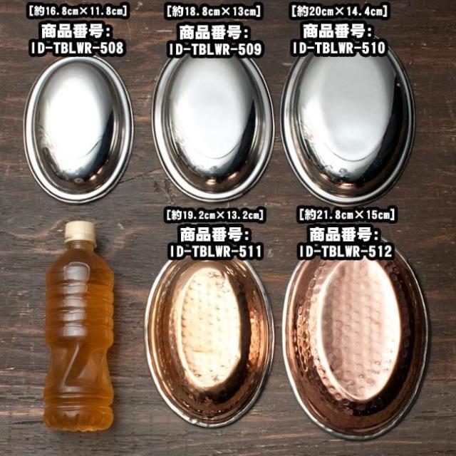カレーやビリヤニなどにぴったりな、ステンレス製のオーバルプレートです。インドでは食堂などで使われております。重ねて収納できますので、食器棚のジャマにもなりません。■ステンレスと銅の二層構造