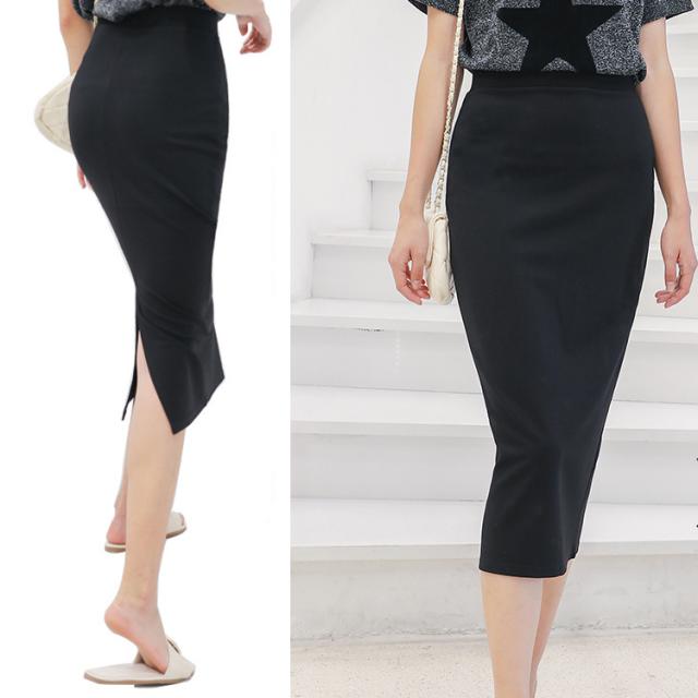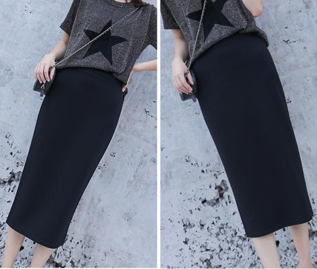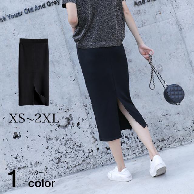 | 【商品名】 スカート ロング丈 スリット タイトスカート マキシ丈 マキシスカート レディース 春 秋 秋冬 無地 ストレッチ 黒 韓国 ウエストゴム ハイウエスト |