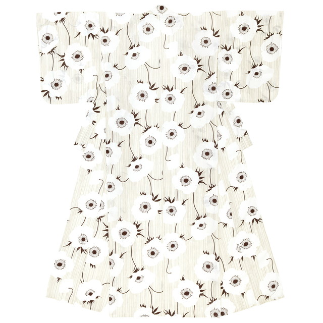 浴衣 レディース クリーム 薄黄色 白 ポピー 花 フラワー 雨縞 綿 夏祭り 花火大会 女性用 仕立て上がり【Sサイズ】【フリーサイズ】【送料無料】