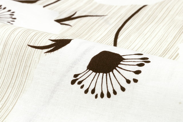 細かい雨縞にポピーの花々が美しいモダンなデザインです。