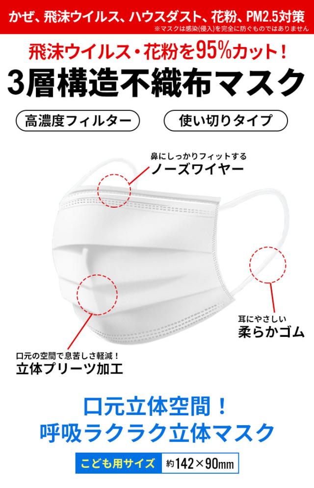 ■キーワード:使い捨てマスク 50枚 マスク ホワイト 3層構造 不織布 こども用 女性用 小さめ 立体プリーツ ウイルス対策 花粉症 風邪 インフルエンザ 予防 対策 ウイルス 感染症 PM2.5 かぜ 使い捨て 箱 在庫あり
