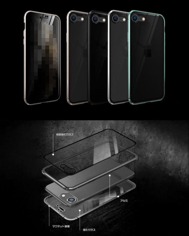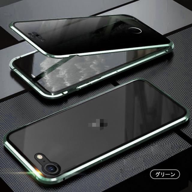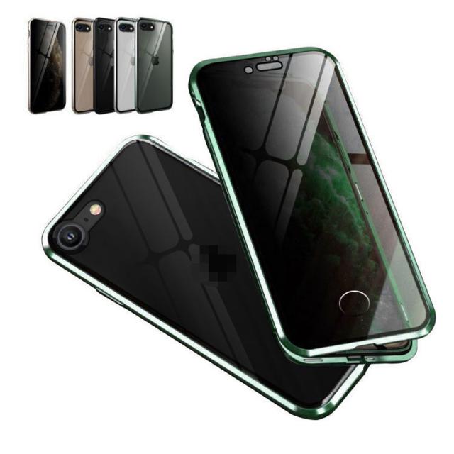 iPhone SE 第3世代/第2世代 ケース/カバー 強化ガラス 耐衝撃 全面保護 覗き見防止 前後ガラス アルミ バンパー クリア 透明 両面 前後 ガラス マグネット 背面パネル付き アルミサイドバンパー おしゃれ おすすめ アイフォン SE3 2022/SE2 2020/iPhone 8/iPhone 7