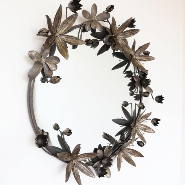 壁掛け ミラー 花 アンティーク調 ユリ シルバー
