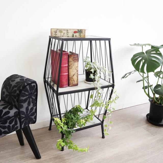 棚部分の素材はMDF(ファイバーボード)で、見た目は石のように見えてとても高級感があります♪リビング、寝室、玄関など、コンパクトなサイズなのでどこでも置きやすいです。