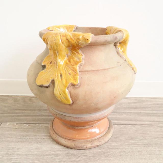 味のあるカーキとベージュの間くらいの色合い。壺のようなユニークなデザイン。