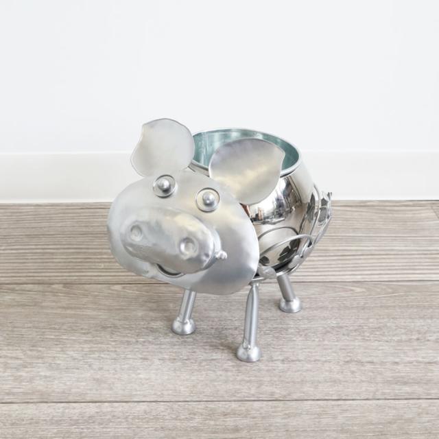 鉢カバー おしゃれ 動物 プランター ブタ シルバー ガーデニング雑貨