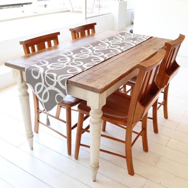 グレイ基調の中に薄いサークル模様が入ったとてもエレガントなテーブルランナーです。