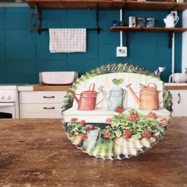 お庭のガーデニング柄のプリントを施したとてもかわいい鍋敷きです。表面は陶器、裏面はコルクで滑りにくくなっています♪お料理中にちょっと鍋を置きたい時はございませんか?使わない時でもキッチンにあるだけでとてもオシャレ、美しい模様が映えて明るい雰囲気になりますよ♪毎日の食卓に華やかさをプラスされては如何ですか?